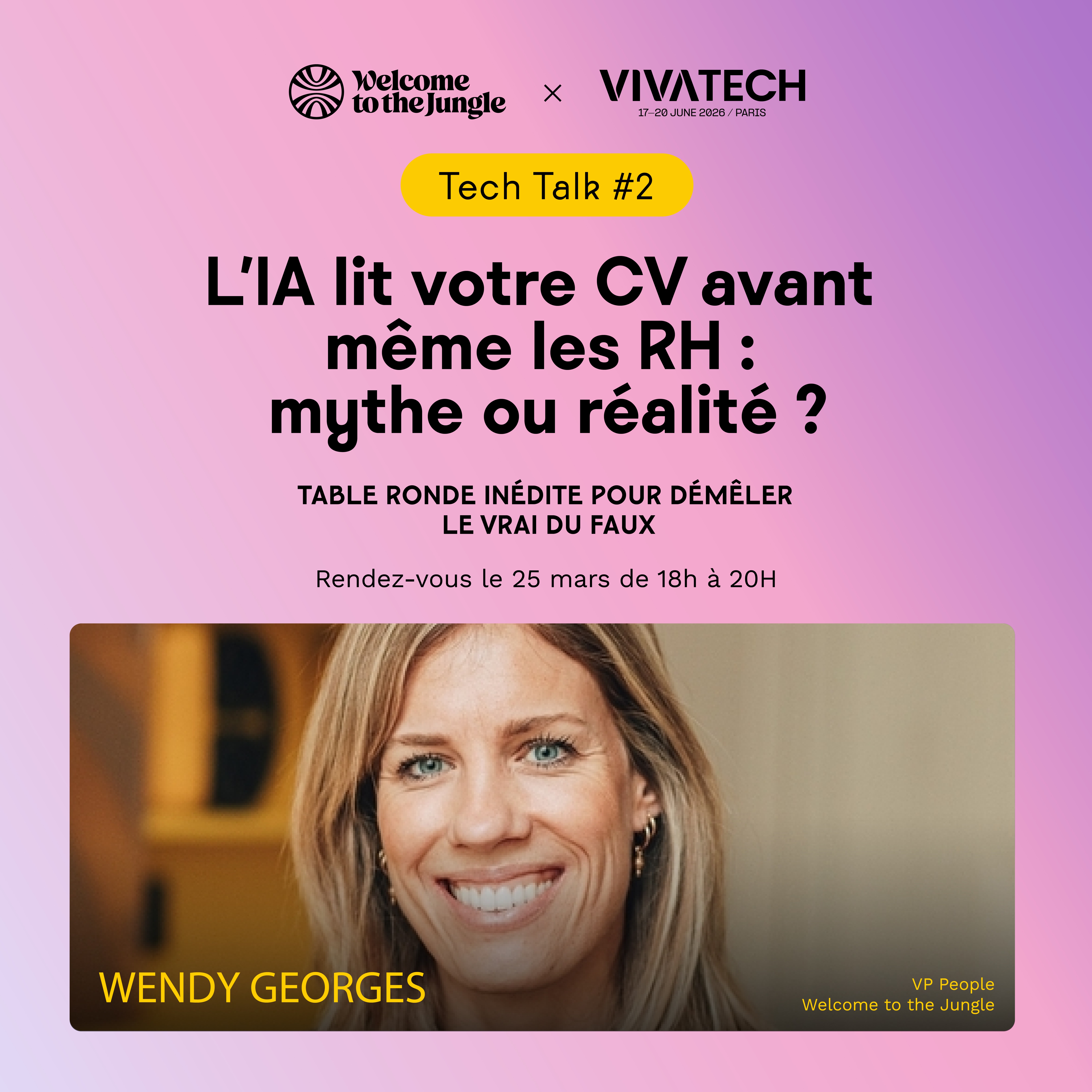 Venez assister au TechTalk#2, une table ronde inédite avec de vrais pro du recrutement qui utilisent (ou pas) l'IA au quotidien. Vous repartirez avec des conseils concrets pour vous démarquer.